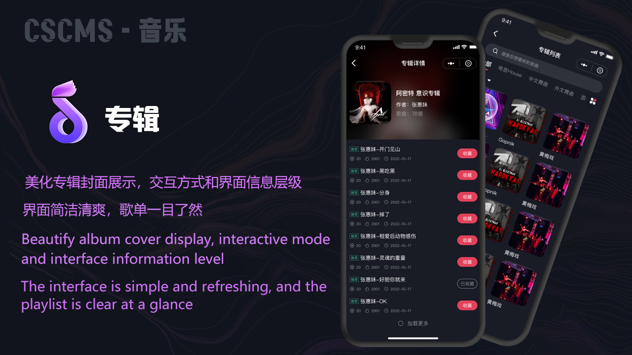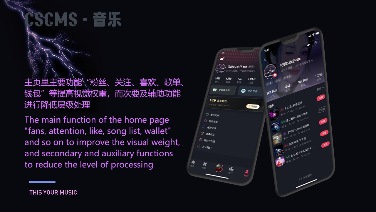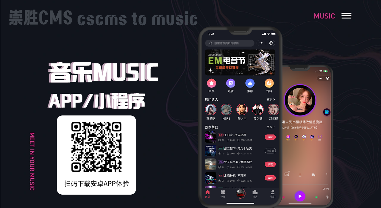 国内知名音乐管理系统,深耕于在线音乐行业,并专注音乐软件领域的开发,以此为用户提供更专业的音乐平台系统.多年的研发经验和跨行业的文化交流,为您提供多维的、强大的功能体验,从功能到性能,全面满足您的诉求。